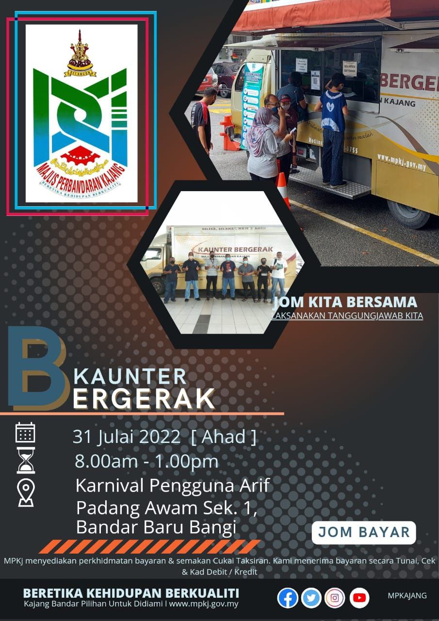 Majlis Perbandaran Kajang On Twitter Jom Semak Dan Bayar Cukai Taksiran Kediaman Premis Anda Di Kaunter Bergerak Hasil Mpkj Ahad 31 7 2022 Lokasi Karnival Pengguna Arif Padang Seksyen 1 Bdr Baru Bangi Masa